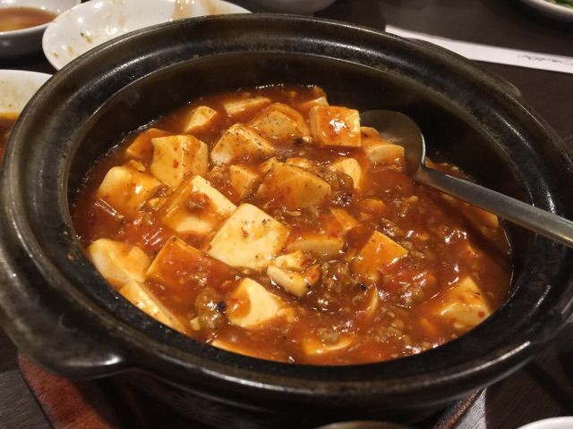 土鍋麻婆豆腐。もっとピリ辛にして欲しかったな〜。