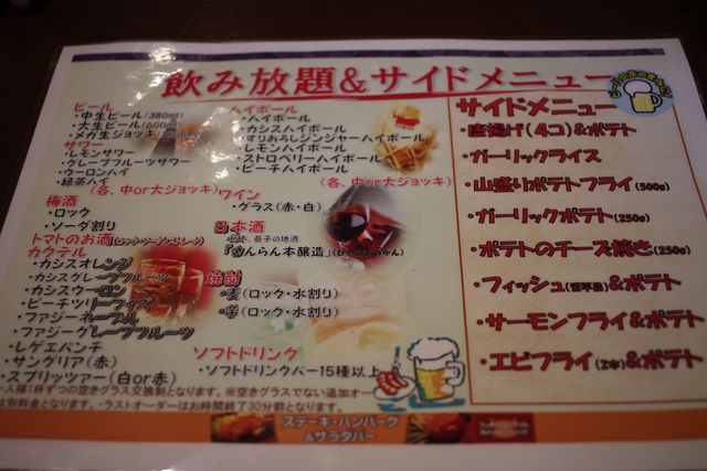 はじめに以下のメニューから一人一品選んで食べたあとは、全てのメニューがおかわり自由になります。