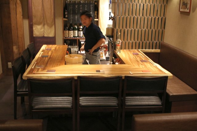 お店に入ると、奥にコの字カウンター、手前にテーブル席が2卓あります。和のテイストですが、とても洗練されたデザインの内装といったイメージです。