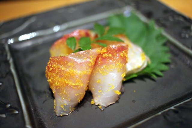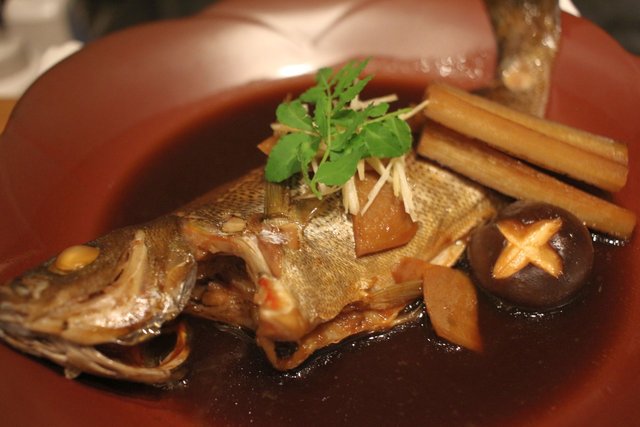 メジナはカラスミがかかって、ちょっと贅沢に。カラスミのしっかりした味がまた、メジナに合います(^^)