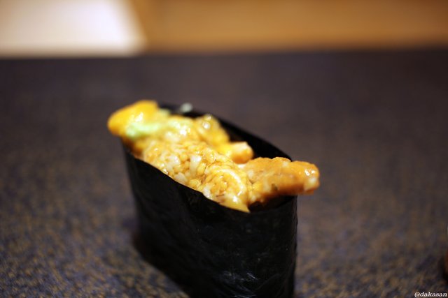 中トロをリセットしてくれた土佐酢和え。穴子の柔らかさ、ワカメのしっかりした歯ごたえが印象に残る一品。