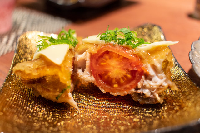 『天然鯖 トマトチーズ大葉巻き』は、刺身にも使えるほどの鯖をつかった一串。