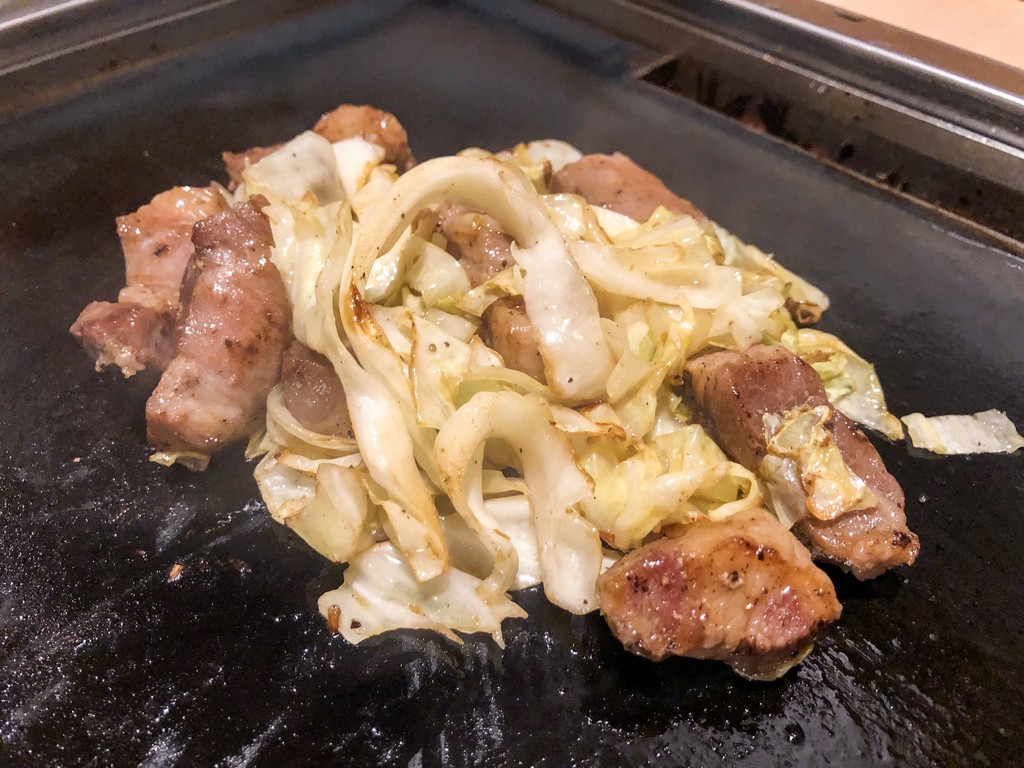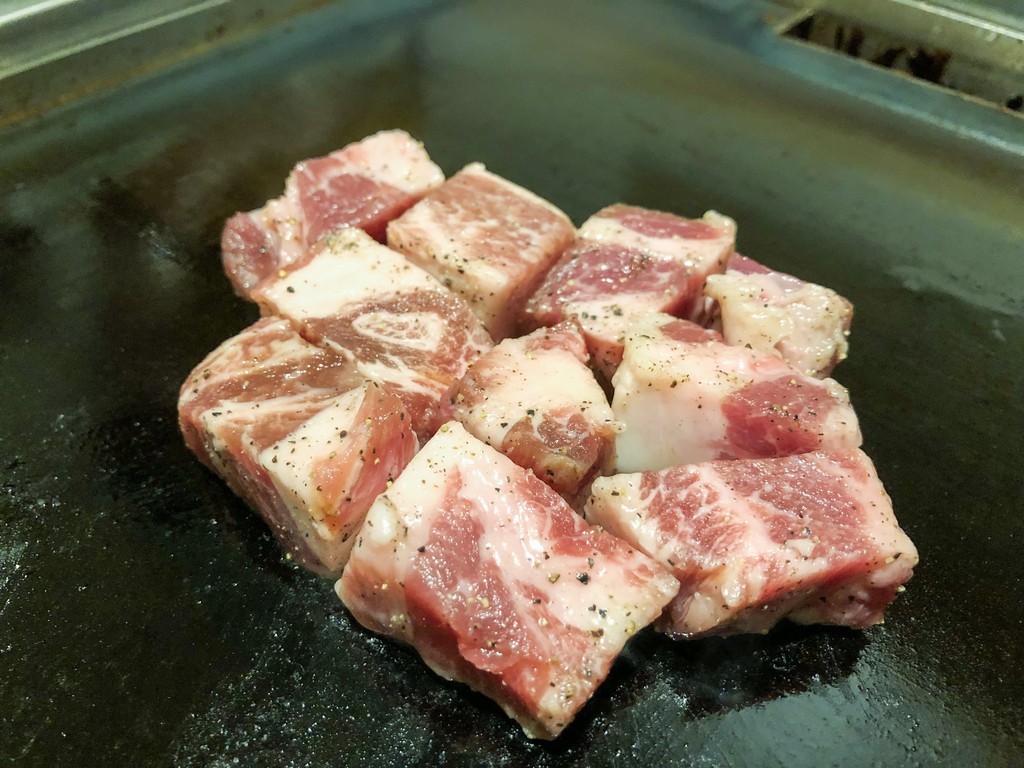次にいただいたのは「イベリコ豚サイコロステーキ」。これも大ぶりのカットで嬉しい〜。味付けはシンプルに塩胡椒で。肉の旨味、脂の甘みをたっぷり感じられました。これが1100円とは、お得すぎではないですかね・・・?