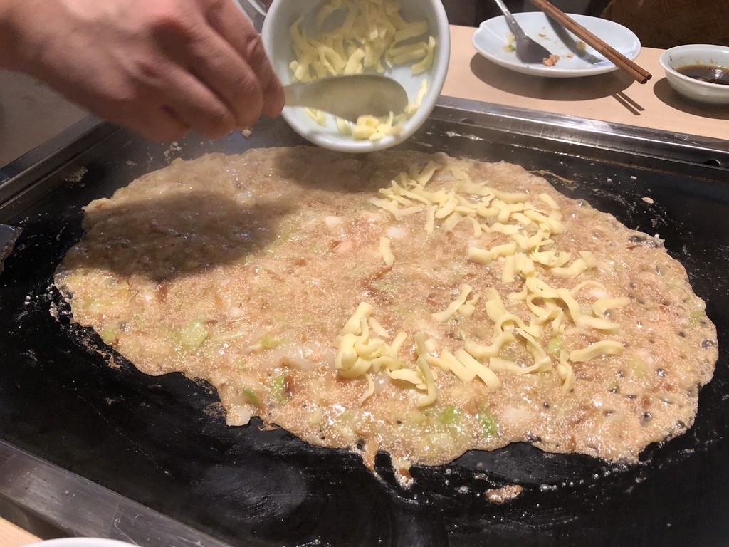 さていよいよメインディッシュへ。最初に「明太子もちもんじゃ」をいただきました。