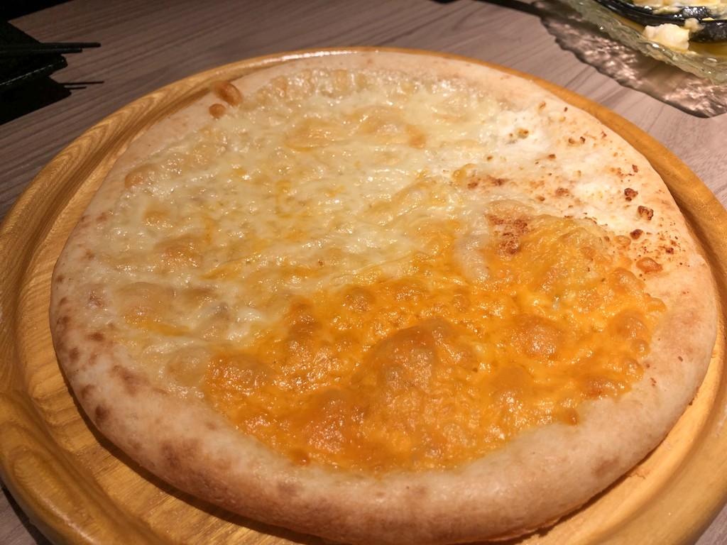 締めはピザ(^◇^;)「クアトロフォルマッジオ」は、蜂蜜をまわしかけていただきました。