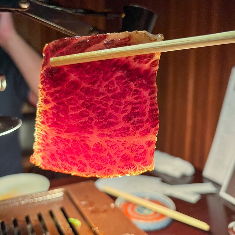 卵黄を崩してお肉に絡めれば、とろける美味しさ!そして脂がやっぱり美味しいです。