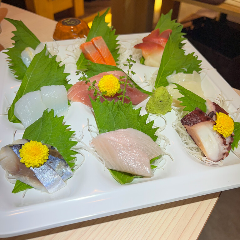 『お刺身ビュッフェスタイル!9種盛り』は目に止まったメニューで思わずオーダー。