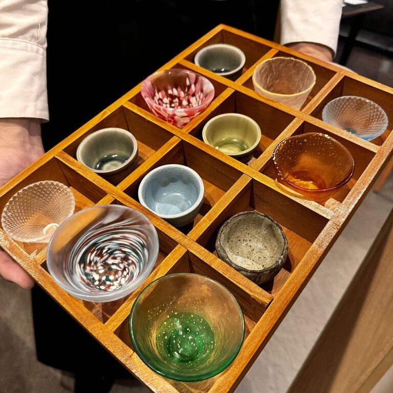 お猪口を選ばせていただけましたが、迷った末にガラスのお猪口に。